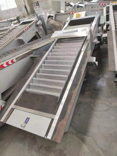 格柵機(jī)工作原理 它主要由卷揚(yáng)機(jī)構(gòu)、鋼絲繩、耙斗、鋼絲繩滑輪、耙斗伸長裝置、機(jī)械力矩保護(hù)、運(yùn)動(dòng)驅(qū)動(dòng)、地面固定軌道和移動(dòng)驅(qū)動(dòng)定位裝置組成。整機(jī)的定位和清洗作用、耙斗的升降、耙斗污垢的開啟和關(guān)閉、耙斗污垢的刮除與固定安裝鋼絲繩牽引耙斗格柵除污機(jī)相同,僅上架與下架分離,上部框架全部設(shè)置在移動(dòng)驅(qū)動(dòng)上。當(dāng)用筆劃開關(guān)控制去污時(shí),機(jī)架可以移動(dòng)到需要去污染的格柵位置。當(dāng)上下齒條對(duì)齊準(zhǔn)確時(shí),耙斗可順利去污。對(duì)于寬柵格,除污機(jī)移動(dòng)齒耙的有效寬度,并繼續(xù)去污,直到網(wǎng)格表面的污垢被清除,網(wǎng)格前后的水位差達(dá)到正常值。對(duì)于多通道分布式格柵,在對(duì)一條溝格柵進(jìn)行去污后,除污機(jī)移動(dòng)到另一條溝,并繼續(xù)去污,直至所有溝渠格柵柵面污物清理完畢,柵前后水位差達(dá)到正常值時(shí)為止。